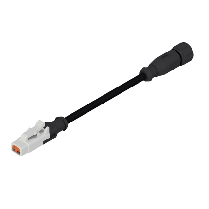 RKW 20-678 – 7/8″ Power Single-Ended Cordset: Female, angled, 2-pin, yellow body, 600 V (UL), 12 A (UL); PVC yellow cable, 16 AWG