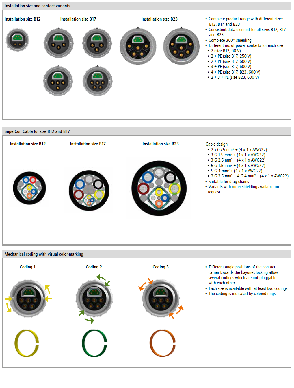 Wire cross section data contacts AWG22