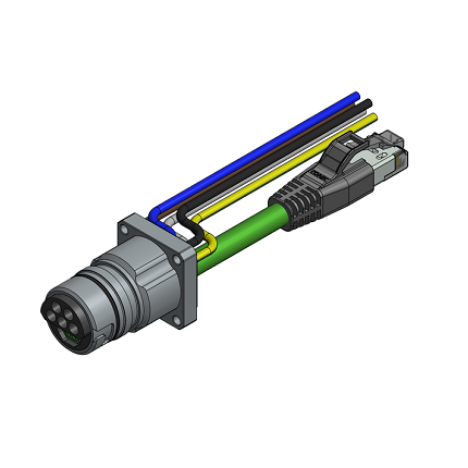 57-03073 ENP-17-1-FSV1Pbu4PEDst4-45SRS8.33-2/2/G6/150/034 B17 Hybrid receptacles front panel mounting, wire termination, long version square, power female, ethernet male, poles 5+4, sez. pwr 1,5mmq, 22AWG, cable TPU, UL, halogenfree, green, Cat5e + ETFE wire, L=2m