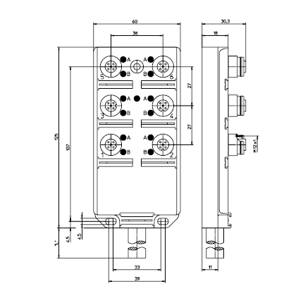 Distributore ASB-Classic 6 porte LED M12x2 segnali Plastic 60 mm cavo PUR nero