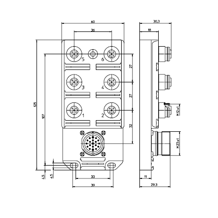 Distributore ASB-Classic 6 porte M12x2 segnali M23 collegamento Plastic 60 mm
