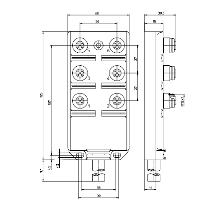 Distributore ASB-Classic 6 porte M12x2 segnali Plastic 60 mm cavo PUR nero