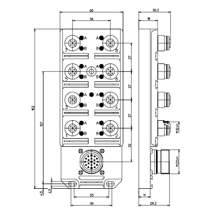 Distributore ASB-Classic 8 porte LED M12x2 segnali M23 collegamento Plastic 60 mm