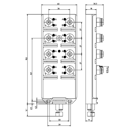 Distributore ASB-Classic 8 porte LED M12x2 segnali Plastic 60 mm cavo PUR nero