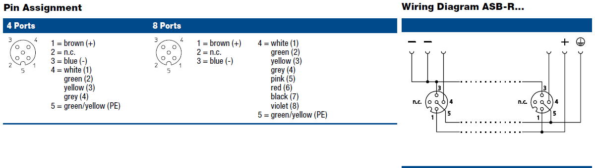 ASB-R 8 5-4-331/…M – ASB-R wired actuator/sensor distributor, 8 x M12 ports, 4-poles, without LED operating, one signal per socket, ground connection, with integrated control cable, PUR jacket, halogenfree, black. Metal, 60 mm