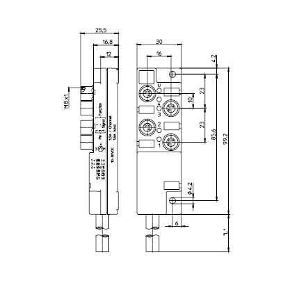 ASBM 4/LED 3-343/…M – Pluggable miniature actuator/sensor distribution box with LED operation and function indicators, top-entry, 4-ports, M8 socket, 3-poles, 1 signal per socket, with integrated control cable. Plastic, 30 mm