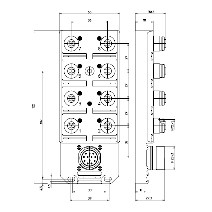 Distributore ASB-Classic 8 porte LED M12x1 segnale M23 collegamento Plastic 60 mm