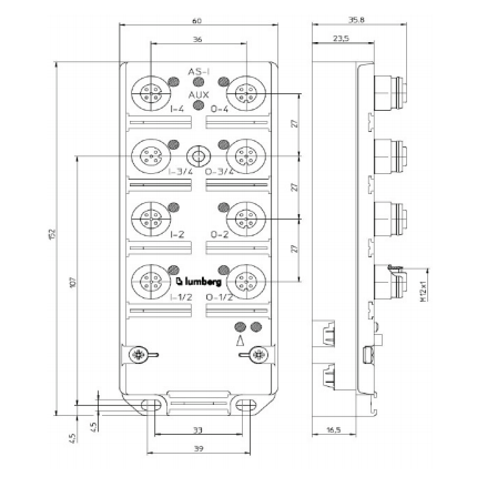 Distributore LioN-Classic interfaccia ad infrarossi 4DI sensori a 2 o 3 conduttori 4DO (8x M12) Plastic 60 mm