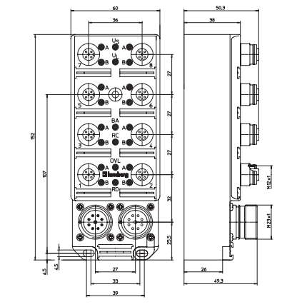 Distributore LioN-Classic Device 16DI (8x M12) M23 Bus connection Plastic 60 mm