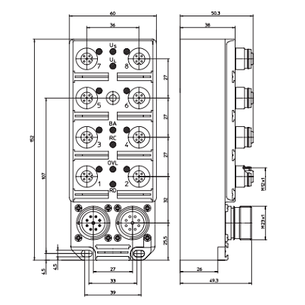 Distributore LioN-Classic Device 8DI (8x M12) M23 Bus connection Plastic 60 mm