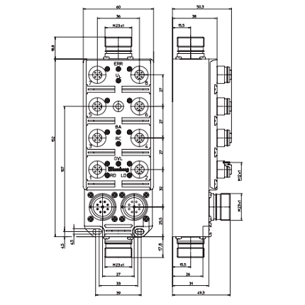 Distributore LioN-Classic Device derivazione integrata 8DI (8x M12) M23 Power Supply Plastic 60 mm