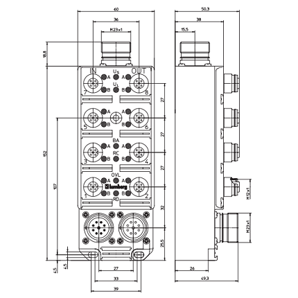 Distributore LioN-Classic Device senza diagnostica 8DI 4DO (8x M12) M23 Power Supply Plastic 60 mm