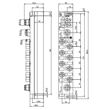 0942 UEM 650 – LioN-Link I/O module with 8 digital I/O channels, channels can be used universally as inputs or outputs, M8 sockets (8x), 3 poles, M12 actuator supply, Plastic, 30 mm
