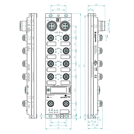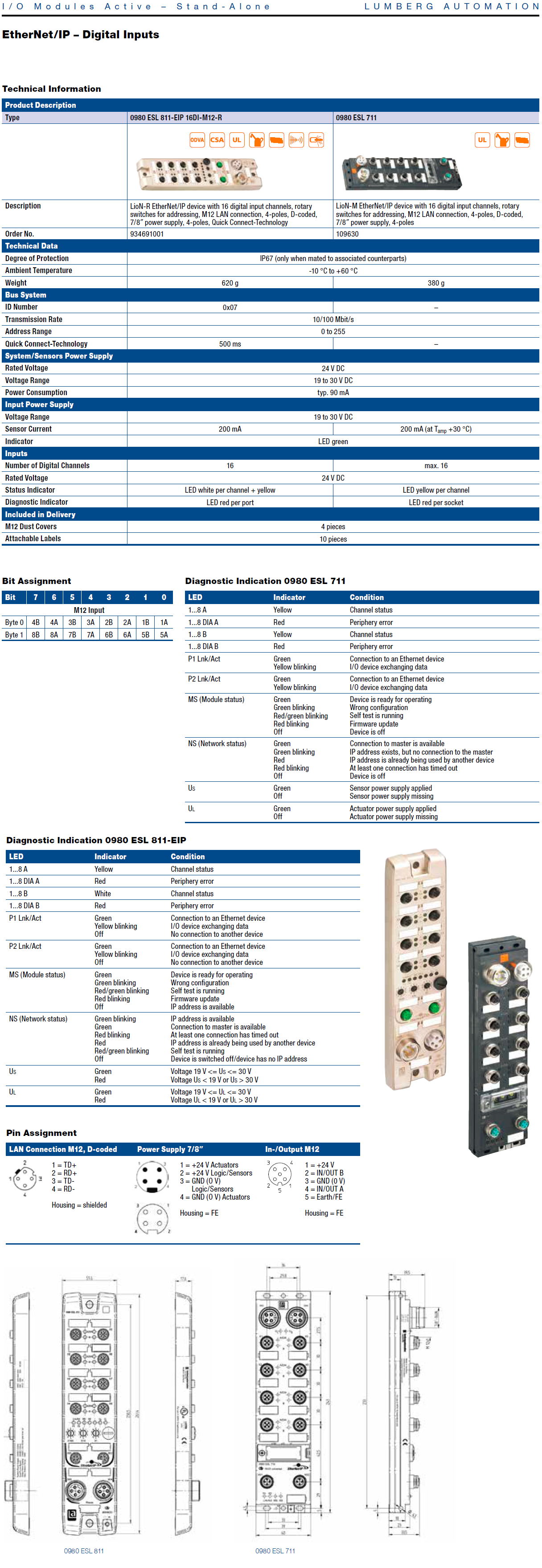 0980 ESL 711 – LioN-M, EtherNet/IP I/O Device, 16DI (8x M12), 7/8″ Power Supply, Plastic, 60 mm
