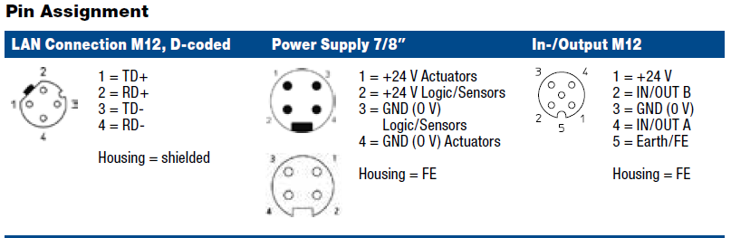 Power Connection (System Supply): 7/8″ Power, 4-poles
