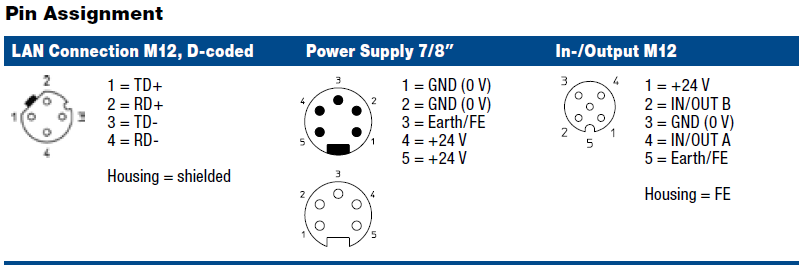 I/O Connection: M12, 5-poles, A-coded