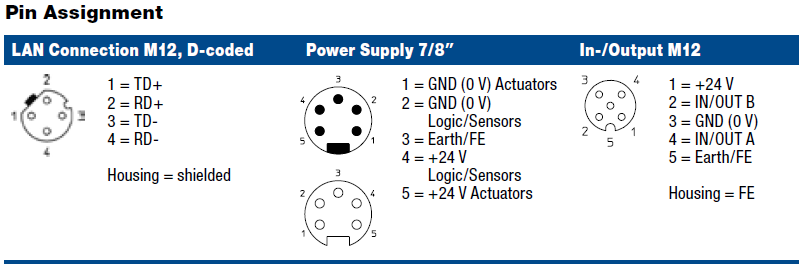 I/O Connection: M12, 5-poles, A-coded