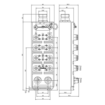 Distributore LioN-M Device 8DI 8DO (8x M12) 7/8“ Actuator Supply Plastic 60 mm