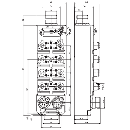 Distributore LioN-M Device 8DI 8DO (8x M12) 7/8” Bus connection 7/8” Actuator Supply Plastic 60 mm