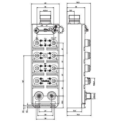 Distributore LioN-M Device 8DI 8DO (8x M12) M23 Power Supply Plastic 60 mm