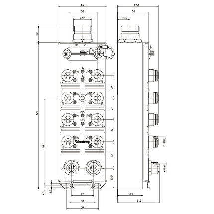 Distributore LioN-M Device 8DO (8x M12) 7/8“ Actuator Supply Plastic 60 mm