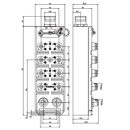 0930 DSL 107 – LioN-M, DeviceNet device with 8 digital outputs (2 A) to connect standard actuators, M12 socket, rotary switches for addressing, M12 bus connection, 7/8“ actuator supply, Plastic, 60 mm