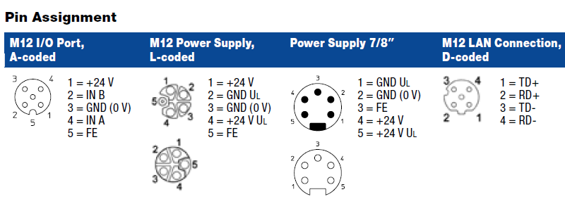 Power Connection (System Supply): 7/8″ Power, 5-poles