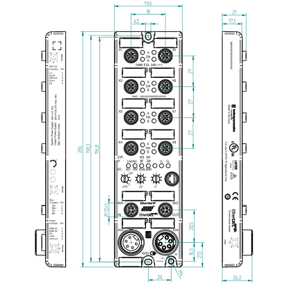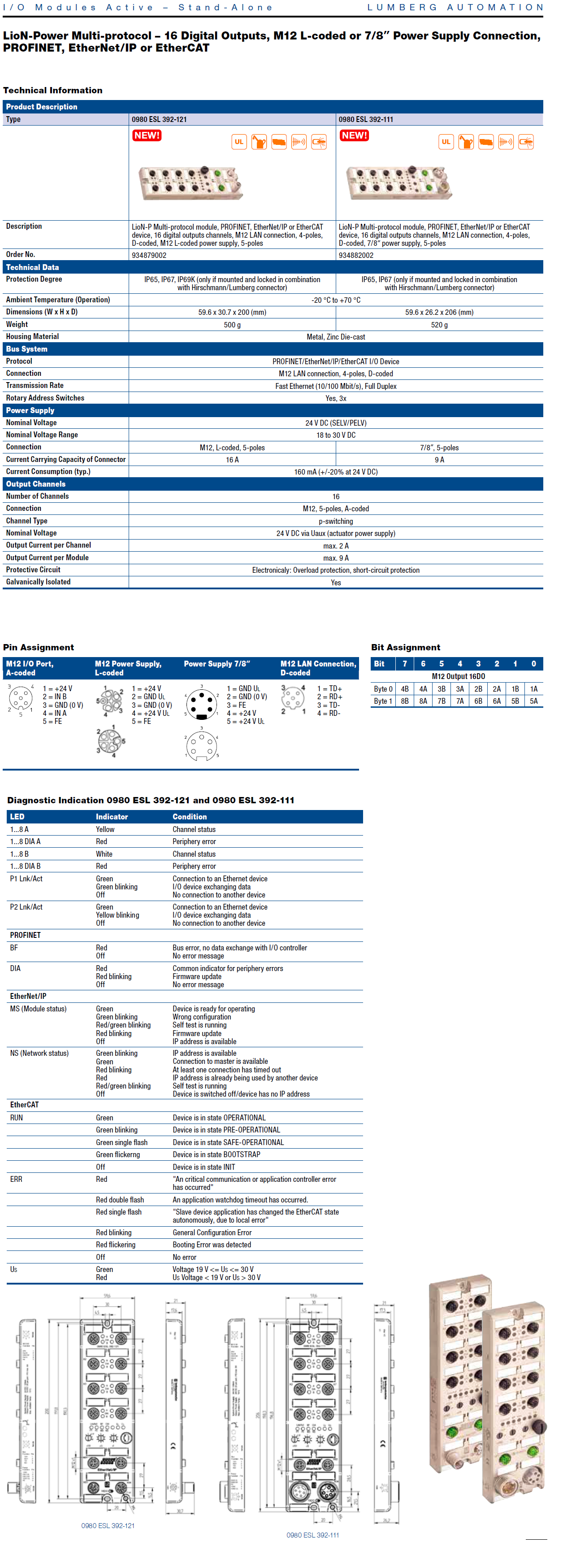 0980 ESL 392-111 – LioN-P, Multiprotocol I/O Device, 16DO (8x M12), 7/8″ Power Supply, Metal, 60 mm