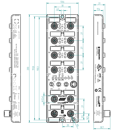 Distributore LioN-P Device 16DO (8x M12) M12 L-coded & 7/8″ Power Supply Metal 60 mm