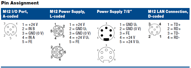 Power Connection (System Supply): 7/8″ Power, 5-poles