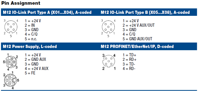 Power Connection (System Supply): M12 Power, 5-poles, L-coded