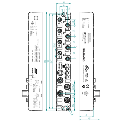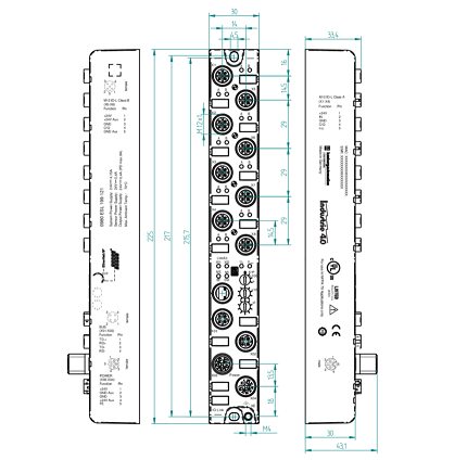 Distributore LioN-P Master 4DI 8IOL (8x M12) & (8x M8) M12 L-coded Power Supply Metal 30 mm