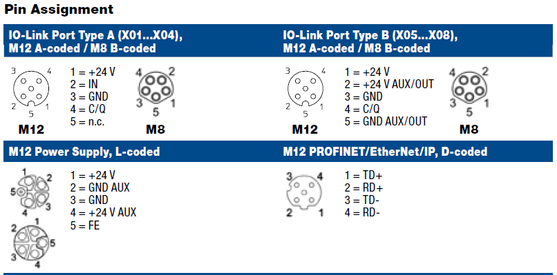 Power Connection (System Supply): M12 Power, 5-poles, L-coded