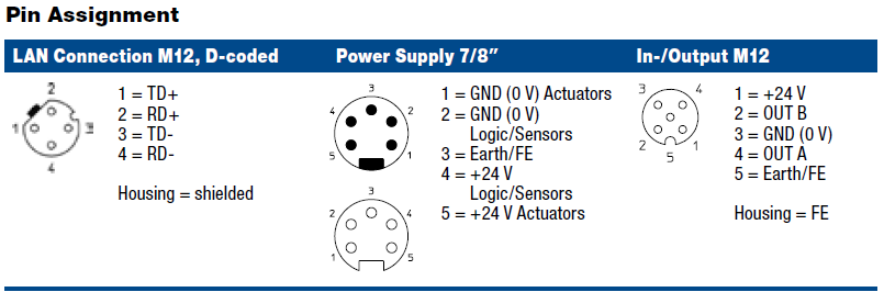 I/O Connection: M12, 5-poles, A-coded