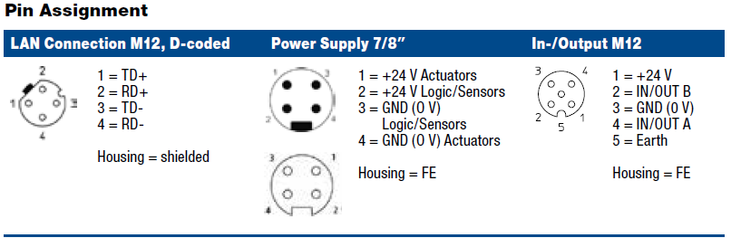 Power Connection (System Supply): 7/8″ Power, 4-poles