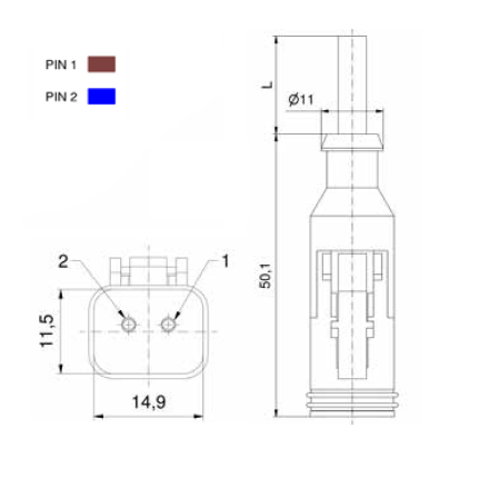 55-00388 DT06-2S-A/K1/0.75/2m DT SERIES 10-230 V AC/DC socket axial 2P, 8A, cable PUR UL black, 2×0.75 mm², L=2m without LED-protection circuit