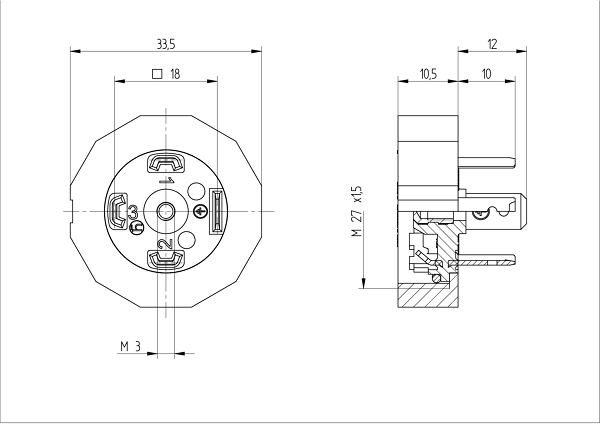 GSP 211 PG11 GSP DIN standard receptacle with connection thread and solder contacts: Form A, 3-pin (2+1PE), PG11, black housing, solder type; 400 V AC/DC, 16 A