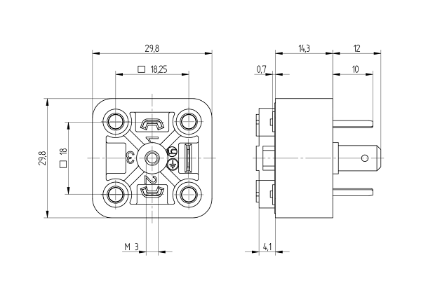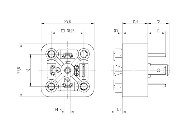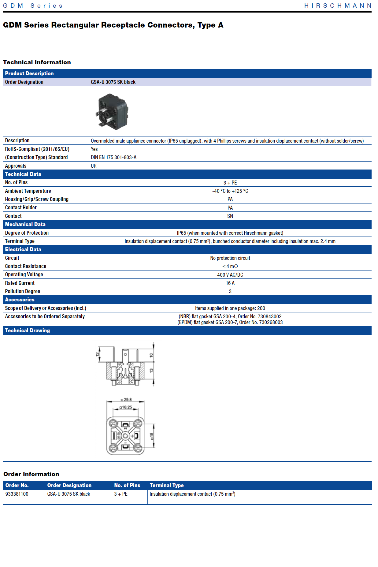 GSA-U 3075 SK GSA-U DIN standard receptacle with IDC contacts: Form A, 4-pin (3+1PE), IDC type; 400 V AC/DC, 16 A