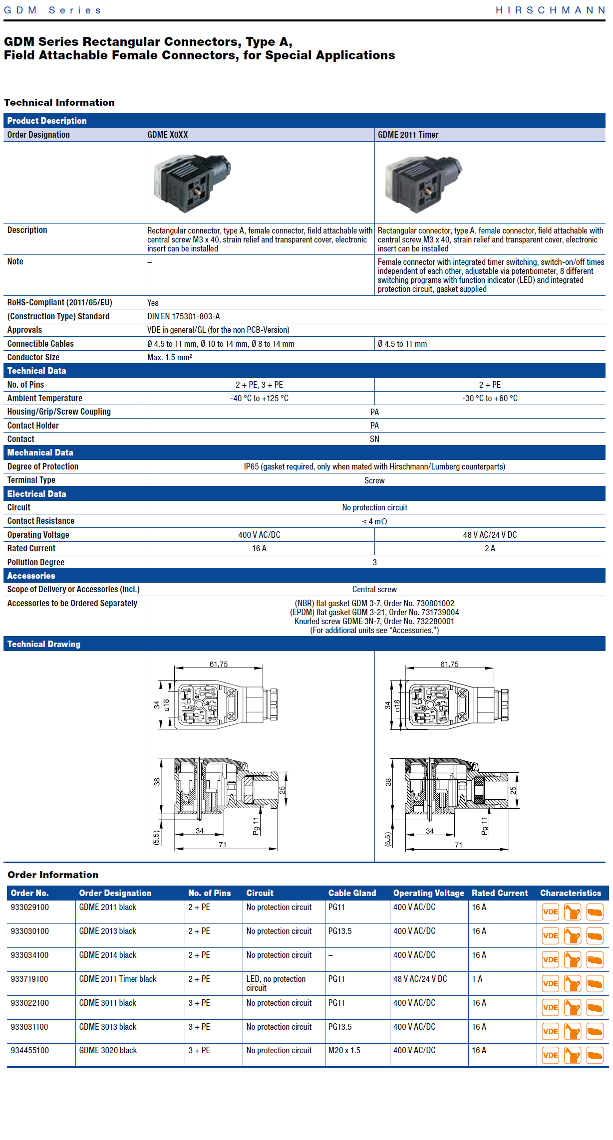 GDME X0XX: 2 + PE, 3 + PE