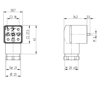 GDM Series Valve Connectors, Type A, Field Attachable Female Connectors, no Circuit, with and without Bridge-rectifier