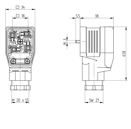 GDME 2011 Timer: Rectangular connector, type A, female connector, field attachable with central screw M3 x 40, strain relief and transparent cover, electronic insert can be installed