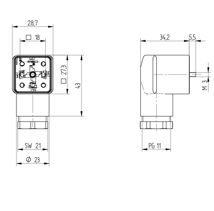 GDM316B-A0U-10F GDM Standard DIN Standard Field Attachable Connector: Form A, 4-pin (3+1PE; PE across cable outlet), grey housing, screw type, PG11; without circuitry, 230 V AC/DC, 16 A