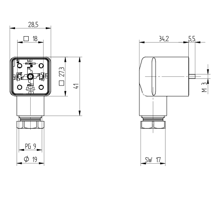 GDM3169-A0U-10F GDM Standard DIN Standard Field Attachable Connector: Form A, 4-pin (3+1PE; PE across cable outlet), grey housing, screw type, PG9; without circuitry, 230 V AC/DC, 16 A