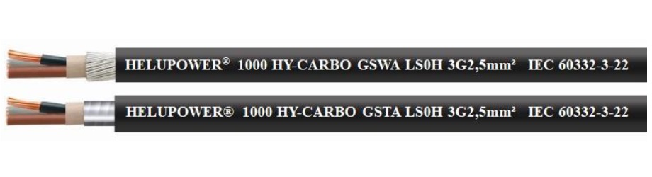 The HELUPOWER ® 1000 HY CARBO GSWA LS 0 H is a halogen free power and control cable with a reduced flame propagation and reduced emission of toxic/corrosive gases and opaque fumes in case of fire The HELUPOWER ® 1000 HY CARBO GSWA LS 0 H is suitable for use in civil/industrial environment, in fixed lay also directly buried in ground without protection