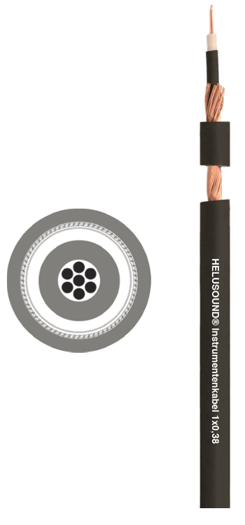 The HELUSOUND® instrument cable with spiral screen is a non-symmetrical, double shielded cable. This cable is specially suitable for connecting high ohmic components such as synthesisers, keyboards or guitars in professional stage and studio operation. The high-quality 1×0.38 special cable has an increased cross section, a semi-conductor layer and a double spiral screen, which makes it suitable for the most stringent requirements of professional stages and studios.