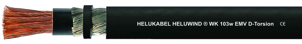 The WK 103w EMV D-Torsion has been designed for flexible use, and specifically for torsional load in the cable loop of a wind power plant. The voltage level has been configured as 0.6/1 kV for all dimensions, which means that the cables can also be laid in parallel in compliance with UL standards. It is no longer necessary to separate the cable routes. The WK series has been successfully tested for more than 18,000 torsion cycles and thus offers optimum operational reliability far beyond the service life of the wind power plant.