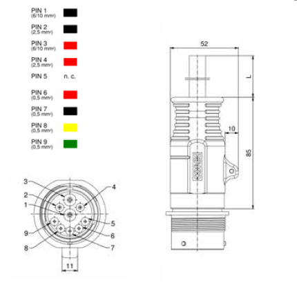55-10119 HD34-24-91-P/600P/5m Series Isobus Type HD, n. poles 9, male, max. 32 V DC current rating 600P cable 2×6-2×2.5-4×0.5mmq PUR black , L=5m