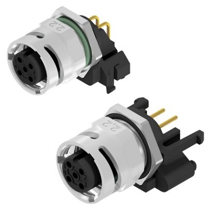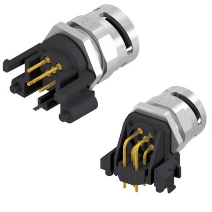 43-04456 SAL – MB12S – FKHWO4 M12x1 A-coded female angled 4 pos. back panel mounting, bayonet/screwable locking, solder pin angled panel thickness 2,2 mm