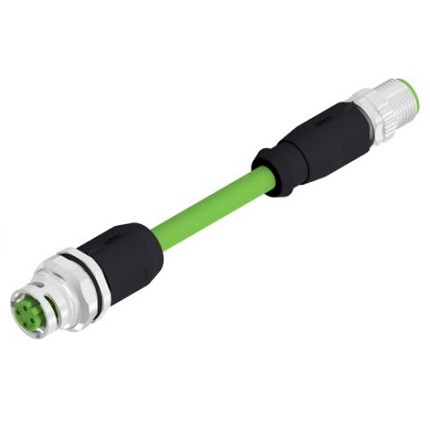 43-23977 SAL – MB12D – RFKH4.2 – 12D – RS4.2 – 1,5 / G6 / A1002 M12x1 D-coded female axial 4 pos. back panel mounting + M12, bayonet/screwable locking, Ethernet Cat5e TPU UL 2x2xAWG22 L=0,6m