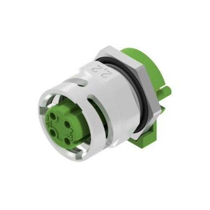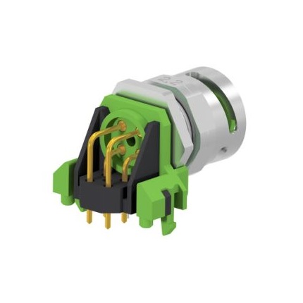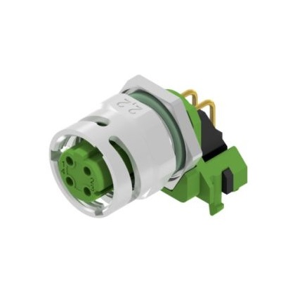 43-03920 SAL – MB12D – FKHWO4 M12x1 D-coded female angled 4 pos. back panel mounting, panel thickness 2,2 mm, bayonet/screwable locking, solder pin angled h=9mm